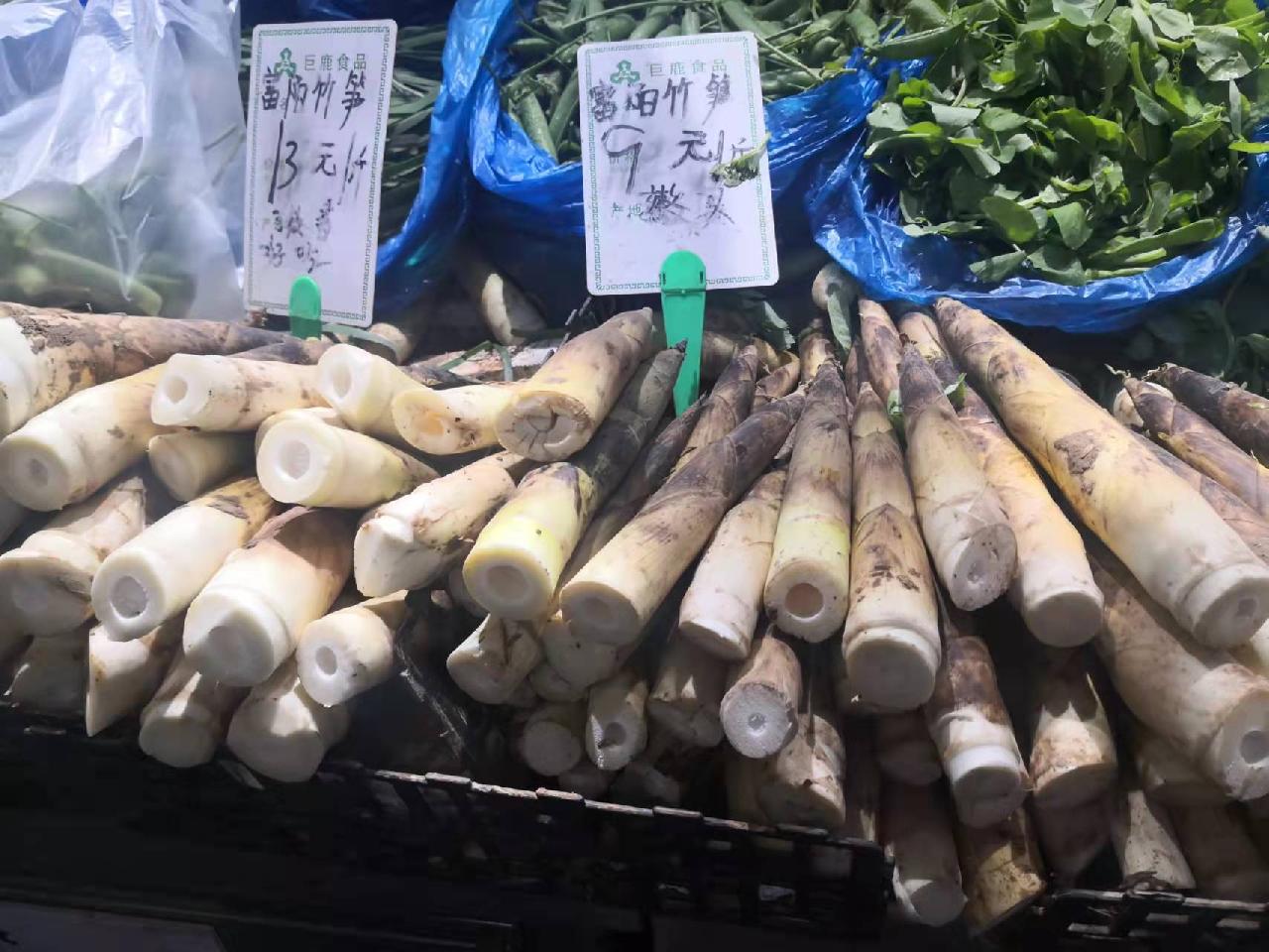 冬笋和竹笋提前大量上市后,售价大幅下降,冬笋零售价已经普遍降至每斤10至16元,竹笋零售价已普遍降至10至18元一斤,江南菜场竹笋最低售价9元一斤。马立斯菜市场的摊主边吆喝边销售: