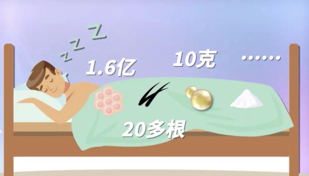 然后是头发,常人每天掉发大约在 70~100 根,那睡觉时间我们就算掉 20~30 根。