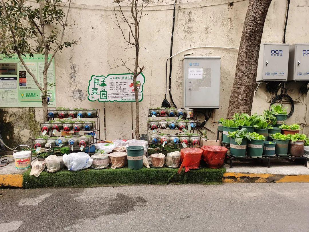 “瓶子菜园”始于2019年,是日七居民区的自治项目。因为考虑到了清真小区面积小、居民们对“田园牧歌”生活的向往等因素,再与垃圾分类、废品再利用和美化环境相结合,“瓶子菜园”项目一经推出,就十分受居民的欢迎。大家动手用废弃的水瓶做花盆,亲自松土、栽种,期待着小小的菜园能够为小区带来更多活力和生机。