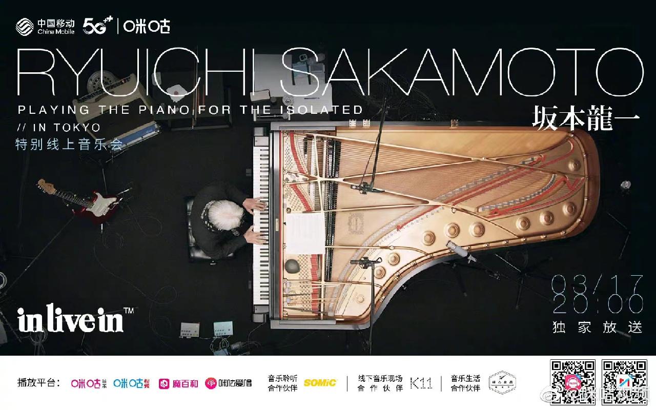今晚(3月17日)20:00点,坂本龙一特别线上音乐会《Playing the Piano for the Isolated》将在咪咕视频、咪咕音乐以及inlivein平台上演。