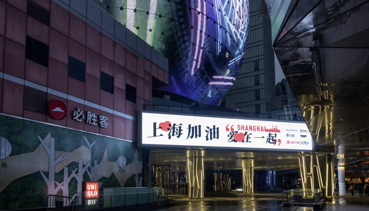 记者获悉,除了根据疫情防控要求做好管控、消毒、核验、测温等工作外,在上海市信息服务业行业协会的牵头下,沪上多家商场、购物中心也通过征集市民的暖心故事、鼓励话语并投放在大屏幕上的方式,为这座城市加油助威。