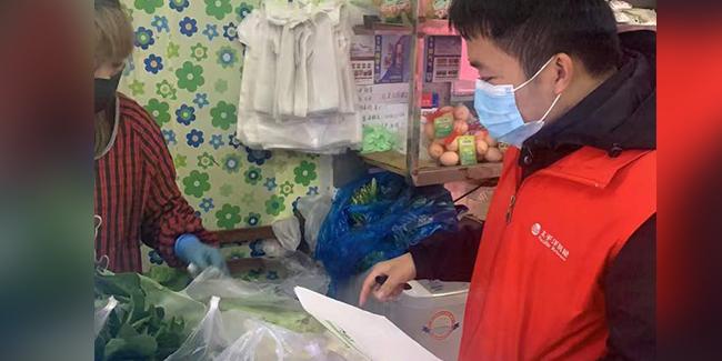 开始时每天60多单,后来每天都有100多单,多的时候接近200单。这些订单每天上午10点半左右分发给曹若曦太平洋房屋的小伙伴们,师帅帅、石传新、王俊杰、段元豪、高忠泽、袁军、魏宏旭和新人吴惠贤是社区服务的生力军,小伙子们每人负责一个小区,骑着电瓶车,在菜场、超市、小区之间飞驰。菜品缺货时,就自动跳过,买时什么价格就什么价格给大家,不吃差价。
