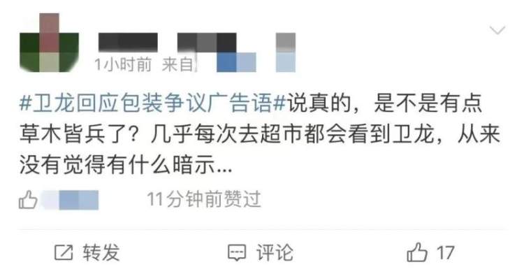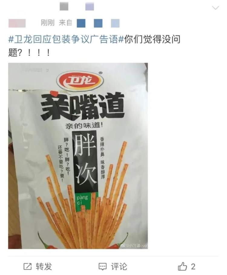 但也有网友认为,质疑卫龙打擦边球的网友是在小题大做,不是包装上的字有问题,而是他们自己想歪了。