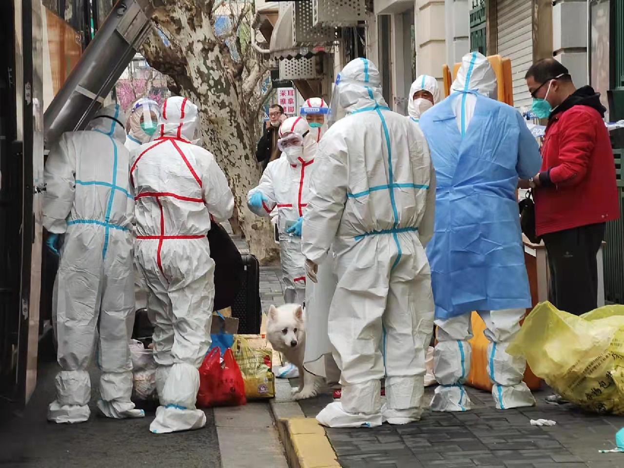 在湘菜馆里就餐却被临时封控在这里的2位顾客,在朋友家里做客时被通知原地封控的老外,楼里几位急需配药的老人……他们和我们一起经历了这充满困难但守望相助的14天。回忆起过去点点滴滴的工作,我最佩服的莫过于年过六旬的威海居委会主任徐建民,他不但跟着我们年轻人一起熬夜,还事事冲在第一线。3月18日的转运过程中,他踩在半掌宽的楼梯上,主动爬上爬下,帮老人扛行李下楼。汗水从额头滴落的那一刻,或许他忘了自己也是一位老人。