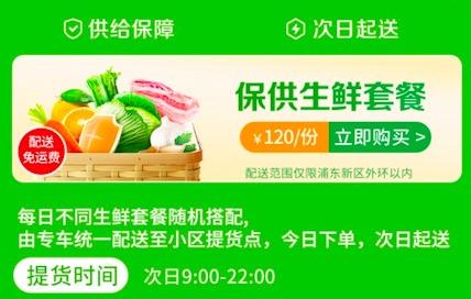 京东到家保供生鲜套餐的服务范围先期覆盖浦东新区外环以内区域,之后将视供给承载能力拓展到更多区域,为更多上海市民服好务。
