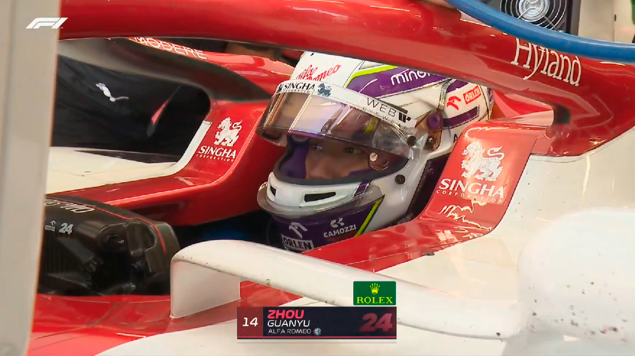 上午的第三次练习赛中,阿尔法·罗密欧车队的周冠宇以1分20秒008的单圈最快速排在第15位。