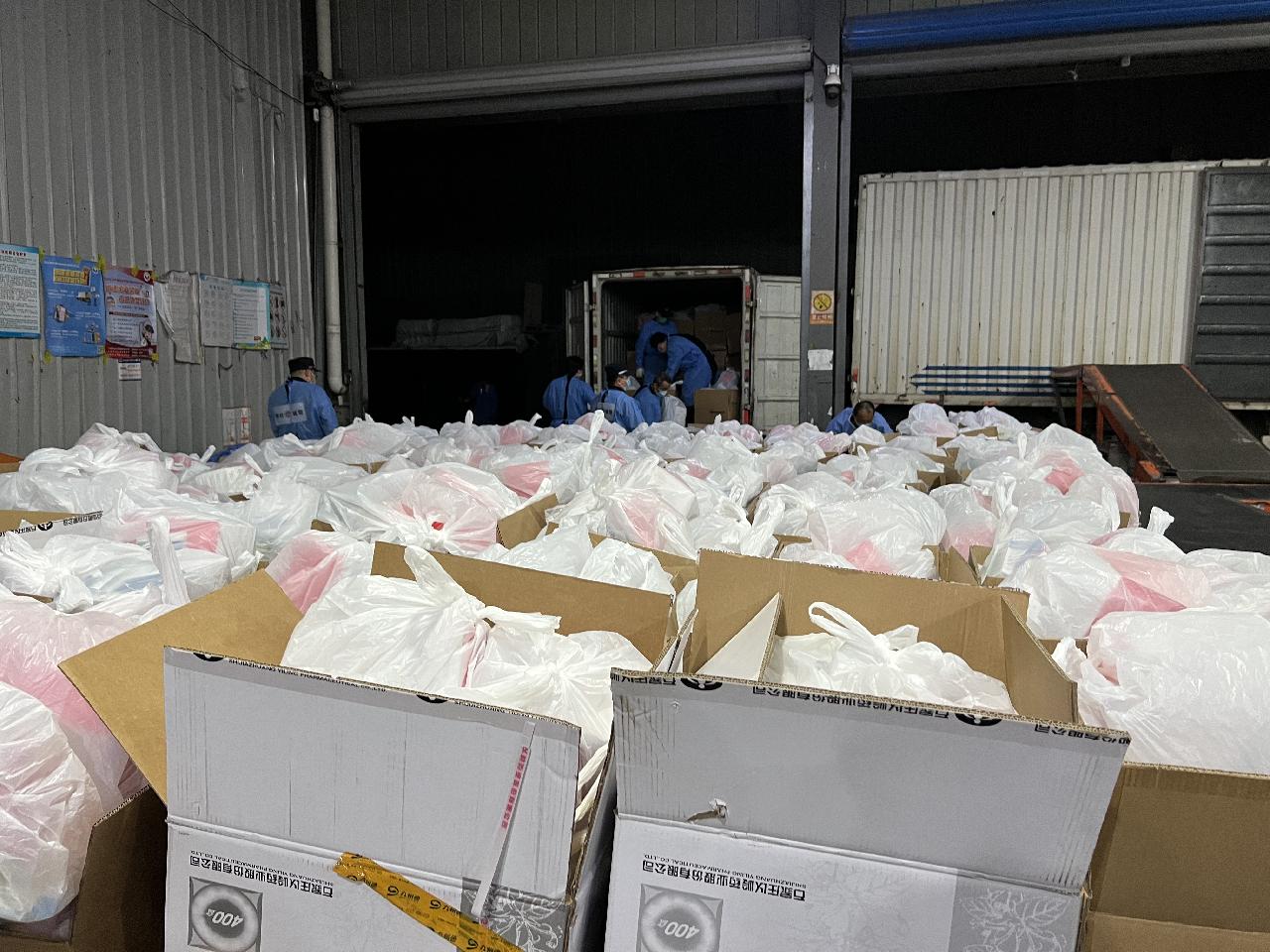 杨茂平说:“这几天需要分拣的抗疫物资单量还在持续在增加。我们必须鼓足干劲,再晚也要连夜把物资送到封控小区群众的手上,保障好群众日常防疫所需。”