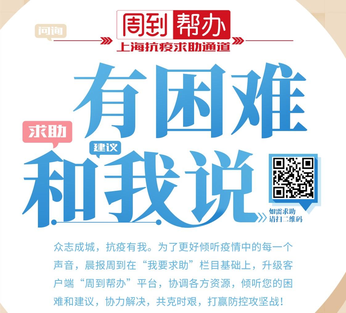 即日起,新闻晨报与旗下新闻客户端“周到上海”APP一起推出“周到帮办”平台,您可以通过以下两种方式,填写相关信息,我们将随时接受您的求助与问询,为您排忧解难: