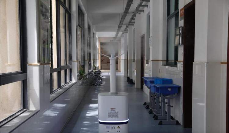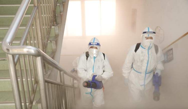 在进小区前,我们事先要了解小区情况,面积有多少,楼栋有多少,车棚与地下室在哪里,随后根据工作量安排好队员与设备。进小区之后,对于楼道消杀,我们使用便携式弥雾机,它的优点是携带方便、机动灵活;对于小区道路、广场等大型公共区域,我们会直接用大功率消杀车。几天后,我们第二批5名队员从重庆带来两台消杀机器人,可以按照设定路线消杀,既能减轻队员工作量,还能防止交叉感染。