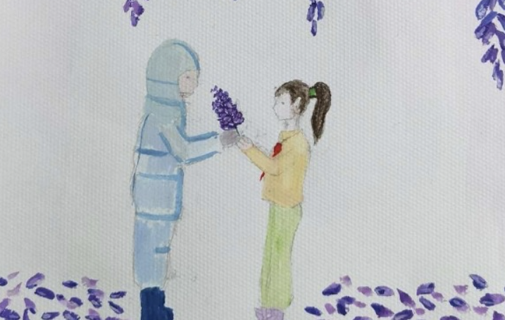 初二2班黄昕悦的妈妈也是一名一线医务工作者。疫情当下,作为白衣天使的她,每天忙着治疗医院里的病患,有时,还要到社区去测核酸等。黄昕悦说妈妈每天忙得连水都喝不上,口罩护目镜勒出一道道深深的印痕,她看着很是心疼,但也很理解妈妈。她说:“我喜欢在妈妈的‘大白服’上画上鲜艳的图案和耀眼的红旗,妈妈义无反顾地穿上白色铠甲,守护着人民的生命安全与健康,同时,我也和这五彩图案一起守护妈妈。”