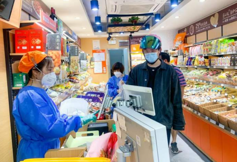在金山区漕泾镇街头,超市、药店、水果店、零食店等商铺陆续开始营业,营业场所也从刚开始的10家增加到36家。在各村居路口,志愿者严格按照防疫规定错峰限量放行,村居民有序外出购买物品,大街小巷正逐渐恢复“烟火气”。