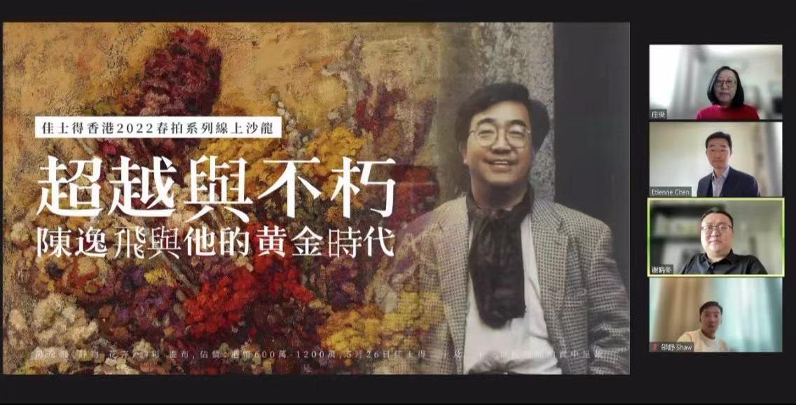 佳士得香港获得陈逸飞家族委托,于2022年5月26日香港春拍中呈献两幅来自陈逸飞家族的珍藏作品:陈逸飞1996年创作的《静物-花卉》及1999年创作的《白塔》。在线上沙龙中,陈逸飞之子Etienne Chen、和美术馆执行馆长邵舒、佳士得二十及二十一世纪艺术部亚洲现代艺术拍卖主管庄俊以及在艺&云杪文化创始人谢晓冬连线直播,畅谈陈逸飞的的不朽艺术,并分享此次上拍的两件陈逸飞佳作。