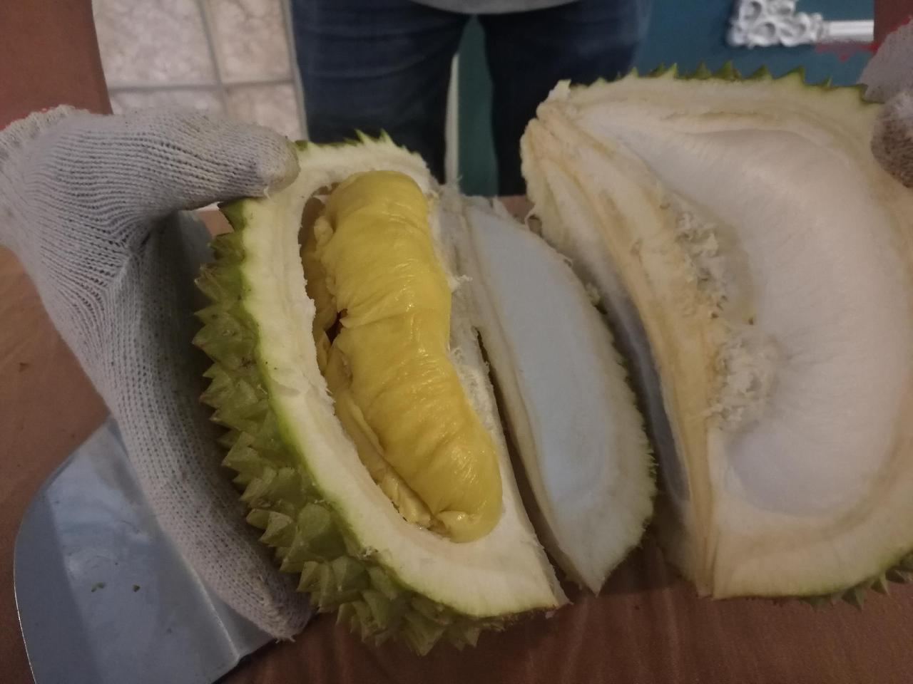 本市榴莲最大经销市场辉展市场,疫情期间泰国金枕榴莲日销量在1000箱左右(每箱32斤左右)。往年5月底6月初,该市场日销售榴莲10至15个柜,每个柜960箱。由此可知,疫情期间本市榴莲上市量大幅减少。