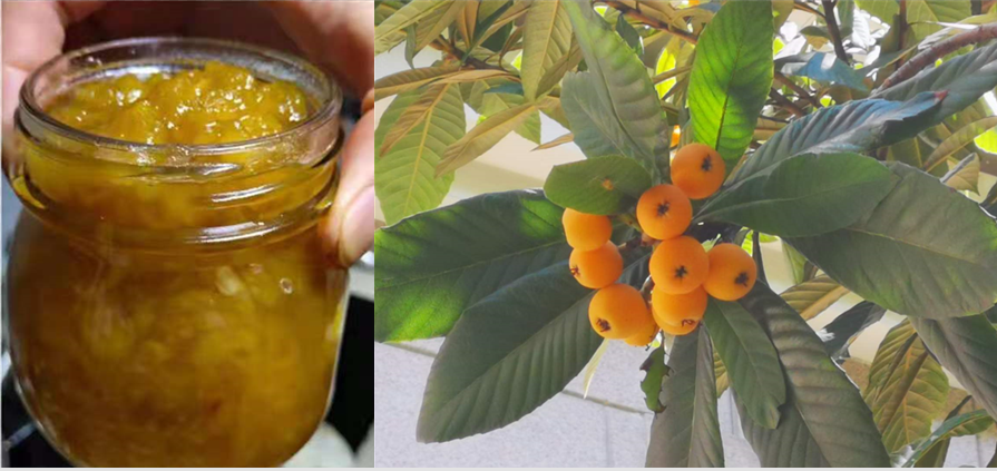 我看到自己的本家严菁小姐近日做了枇杷酱,枇杷取材于自她小区种植的枇杷树。我问了她枇杷酱简单的制作方法(见下图),枇杷剥皮去核,加冰糖小火熬煮即可。