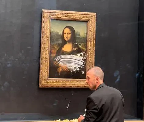 当地时间5月29日,法国卢浮宫镇馆之宝《蒙娜丽莎》在众目睽睽之下被人抹了蛋糕。