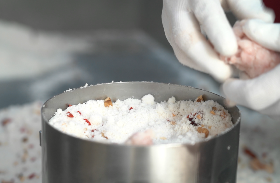 筛粉,和入大把核桃、红枣、松子等,一早,在徐行蒸糕传承人解荣光的蒸糕店里,点心师傅已忙得不可开交。