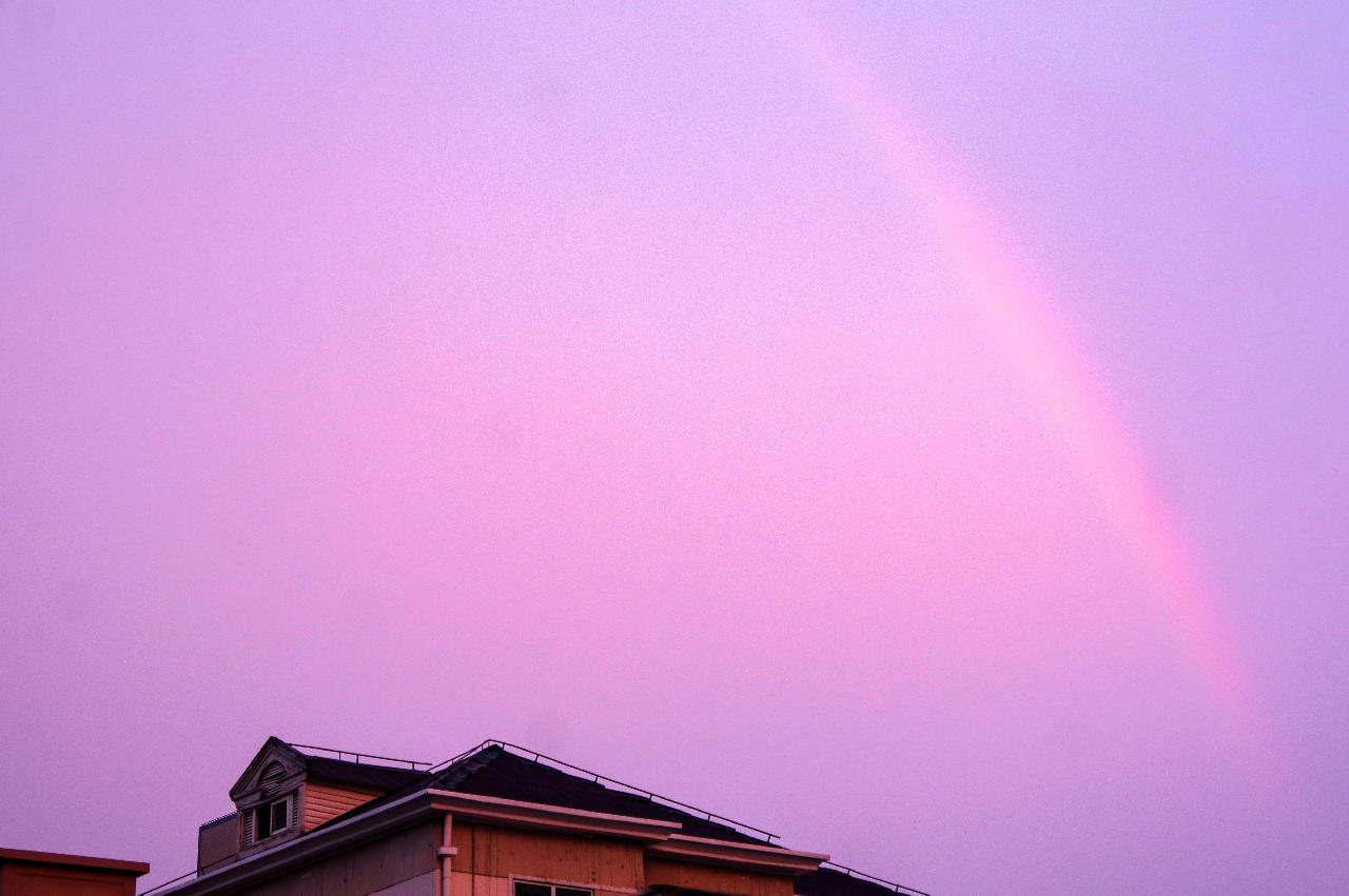 更令人称奇的是,东边天空突然出现一道艳丽彩虹。