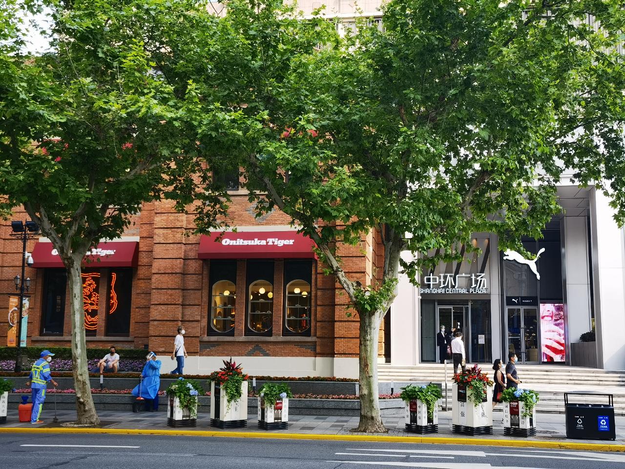 往西稍微走几步路,我站在K11大厦对面,随手抓拍了一张淮海路路况。K11是全球首个融艺术、人文、自然三大核心元素于一体的豪华购物中心,我曾在K11的B3层展厅里看过艺术展览。总的来说,新天地广场、中环广场、K11的线下营业恢复如常,因为正好是上班时间,顾客陆陆续续、三三两两进入商场,人不算很多。