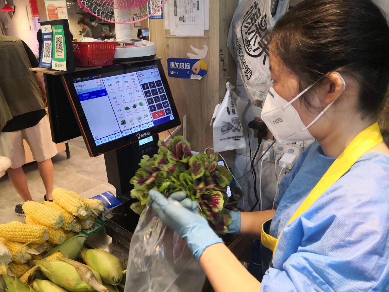 莘庄镇居民顾阿姨讲,宅家期间,她家的菜谱比较单一,以猪肉、鸡蛋、蔬菜为主。黎安集复市后,不但能买到肉、蛋和蔬菜,还可以买到活鱼、活虾,这两天她家的菜谱丰富多了。