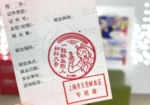 即日起至6月30日,在上海市血液中心献血点参加无偿献血的市民可在献血证上加盖“齐天大圣孙悟空”印章 ,让这份爱与勇敢的见证变得“酷酷哒”。