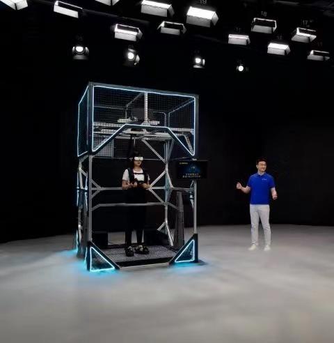 戴上VR头盔,穿上触感马甲和动捕手套,手里握着装备,以自然的步态行走在一台全向运动平台上,你可以做任何事情,去任何地方,绝对和科幻电影《头号玩家》里开启“绿洲”的一幕有得一拼!