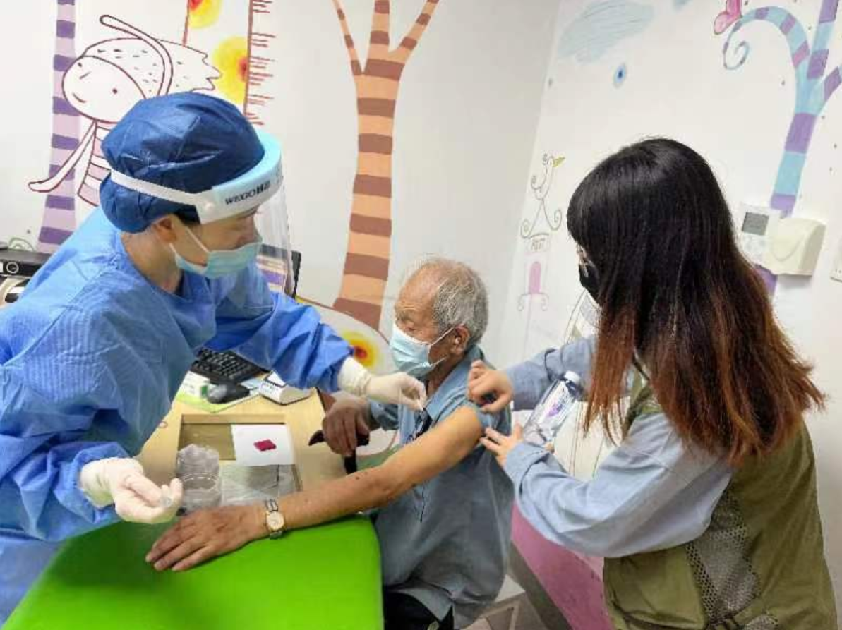 第二天,在东村居委干部的陪同下,方阿婆完成初步健康评估后接种了新冠疫苗,并顺利通过30分钟的健康观察,社区还定期对老人进行回访。受这位百岁老人的影响,社区内不少老年人都表现出了接种疫苗的意愿。