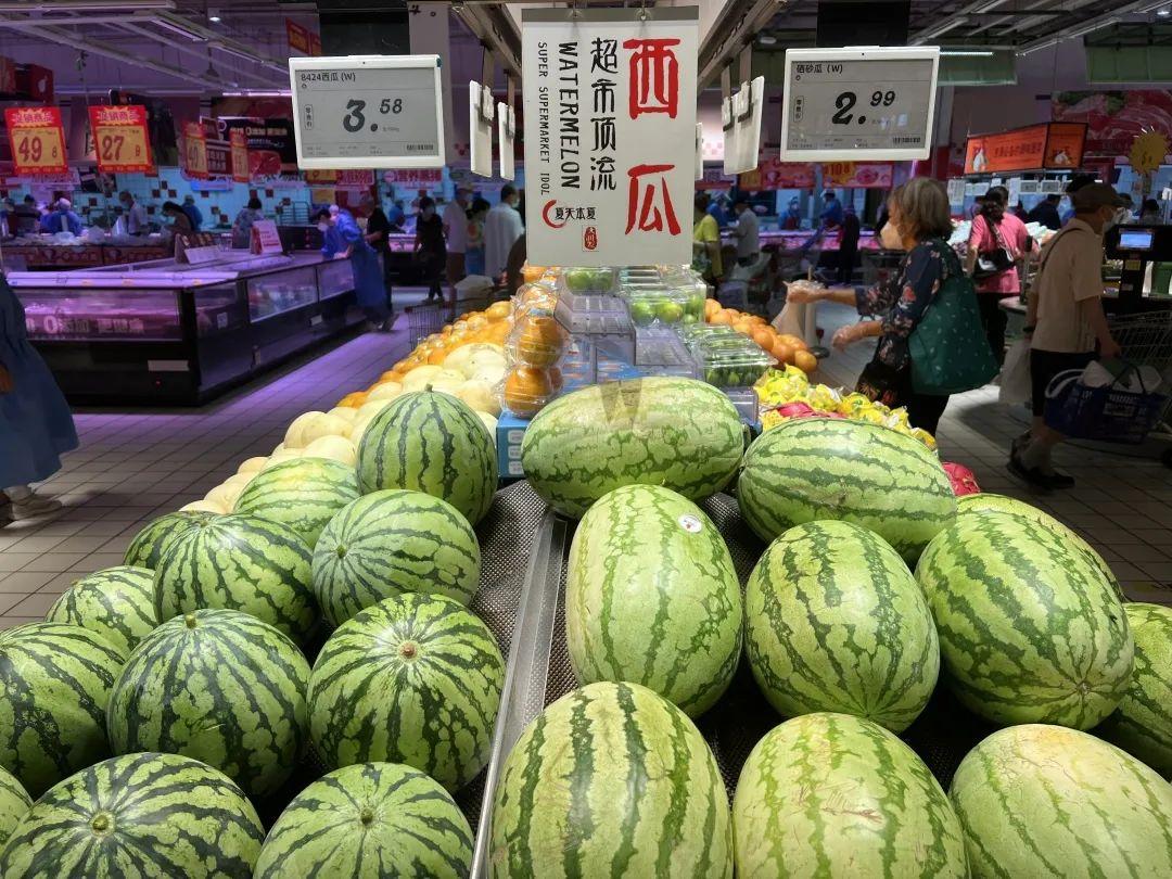 目前在大润发,8424西瓜每斤在3.58至4.98元不等,也有按单只售卖的柜台,每只69.9元。浅绿的底色,墨绿的花纹,切开后则会露出鲜红的果肉,淌着清甜的汁水。挑一个买回家,坐在空调下,用勺子挖着吃,实在是一桩美事。