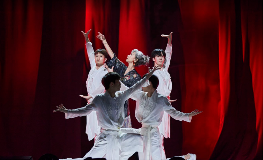 叶蒨文则选择了代表作《潇洒走一回》,摇曳的灯光和舞台上的红色绸缎,最大程度地还原了歌曲MV的画面。多年后再唱,叶蒨文歌声中的豪情和侠义半分未减,更多了几分经过岁月沉淀之后的洒脱与清醒。“恩恩怨怨生死白头几人能看透”“何不潇洒走一回”, 叶蒨文潇洒大气的歌声、舞者的表演与歌词意境的配合天衣无缝,释放出强大的气场。
