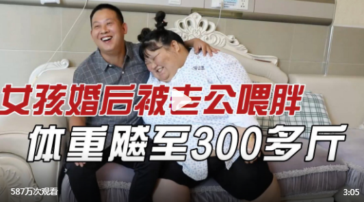她说:“自从认识老公之后,他对我特别好,什么活都不让我干,什么都给我吃,什么都给我买。”就这样一路胖到了300多斤。