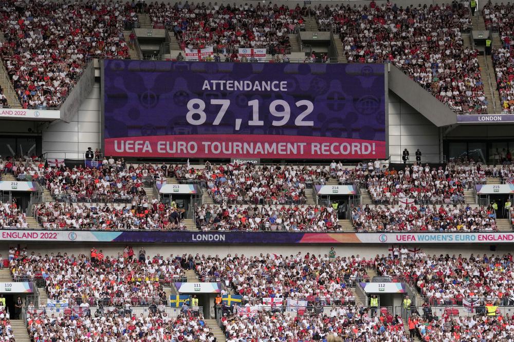 现场,超过8.7万名观众进入温布利大球场,观看这场决赛,打破了女足欧洲杯历史纪录。