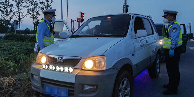 7月28日18时50分许,上海市公安局崇明分局交警支队两名民警驾驶警用摩托车巡逻至崇明大道大东路时,看到一辆同向的白色SUV车头灯格外刺眼,民警特意加强观察,发现该车车头加装有一排大功率灯具,涉嫌违法。
