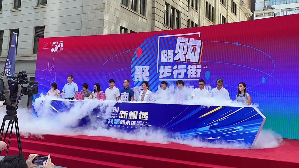 8月5日,南京路步行街“亿元消费券”购物季,在“共创新机遇·共赢新未来”活动启动仪式上发布。启动仪式由南京路步行街企业联合会主办,支付宝为战略合作单位。