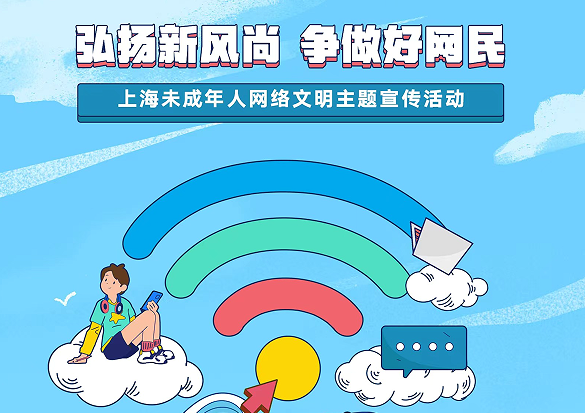 今天,上海市精神文明建设委员会办公室、市委网信办等联合推出“弘扬新风尚 争做好网民”上海未成年人网络文明主题宣传活动,持续加强对未成年人安全用网、文明上网的引导,提升网络文明素养。