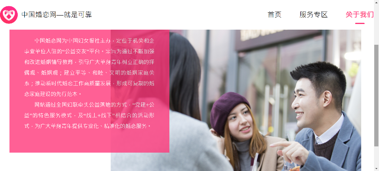 据了解,创办中国婚恋网旨在贯彻落实国家优化生育政策促进人口长期均衡发展的决策部署,充分发挥妇联组织和女性主流媒体优势,基于当代青年公益交友的迫切需求,赋能更多渴望爱情的青年,成全更多美好的婚姻。