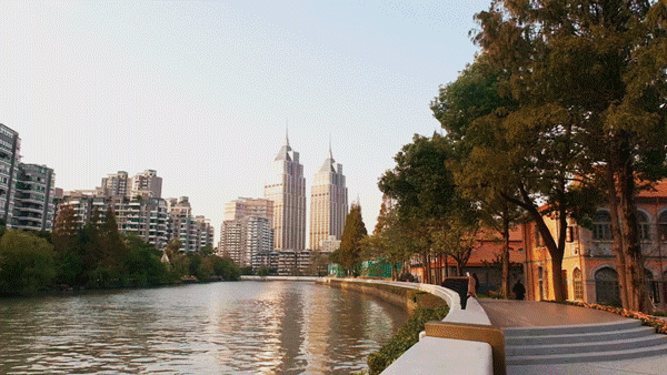 900余米长的岸线上,分布着华东政法大学里的思孟园、格致园、倚竹苑、獬豸园、华政桥、桃李园、东风角、法剧场、银杏院和书香园等十个景观节点。