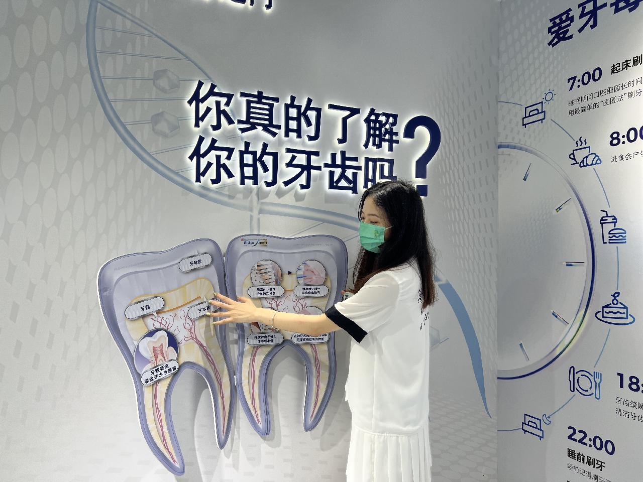 场馆三“遇·欢笑人生”则提供了进阶体验,这里设置了护齿问诊区。现场会有牙科专业人士,为观众提供科普知识、进行口腔检查和护齿专业指导。
