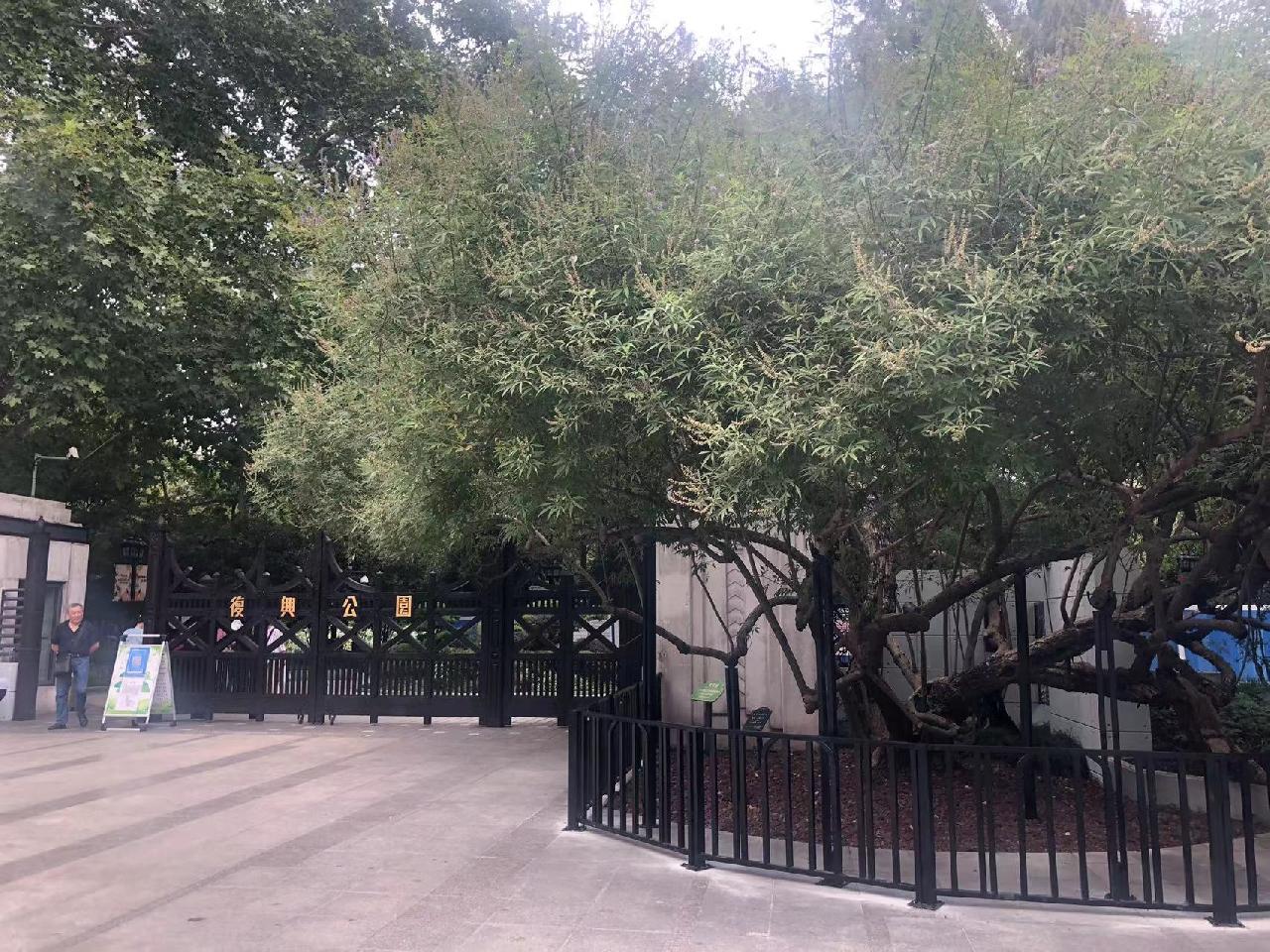 打开围墙后,集中在复兴公园南门区域的5棵古树名木也可以在街区窥见其面貌。南门旁有一棵百年黄荆,这次改造中将原来1米多高的围栏降低为80厘米左右,市民可以看得更清楚。南门左右两侧区域内的百年悬铃木、银杏、欧洲七叶树、白栎等也去除了围栏,市民可以充分感受古树名木所承载的历史变迁、城市变化。公园管理部门希望,拆除围栏后,市民游客要好好爱护这些古树名木。