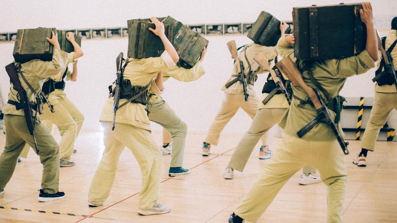 目前,话剧《英雄儿女》排练一个月有余,演员们通过军训、快板、声乐练习、朝鲜族长鼓舞等训练项目,把精气神都提了起来。排练之初,剧组就邀请龙华烈士陵园礼兵队的教官为全剧组演员进行了为期9天的军训,训练内容不仅有基础的军姿训练,例如敬礼、跨立、低姿前进、行进中该如何握枪等等,话剧《英雄儿女》讲述了发生在抗美援朝前线的故事,因此,更特为《英雄儿女》剧组演员安排了模拟在坑道中行动的训练。