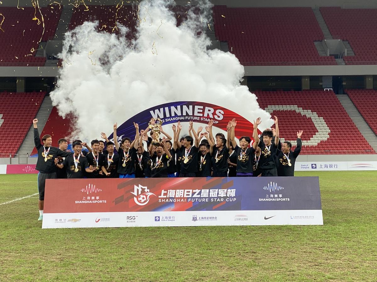 2022上海足球明日之星冠军杯赛今天下午落下了帷幕。在浦东足球场内场进行的最后决赛中,上海U15蓝队3:0战胜了浙能绿城U15,捧起了在这座全新球场里诞生的第一个足球比赛冠军奖杯。