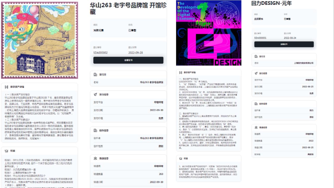 实际上,在回力鞋的“回力DESIGN-元年”、“华山263 老字号品牌馆 开馆珍藏”之后,上海信投、观澜论坛等数字资产也已登记在上海数据交易所。