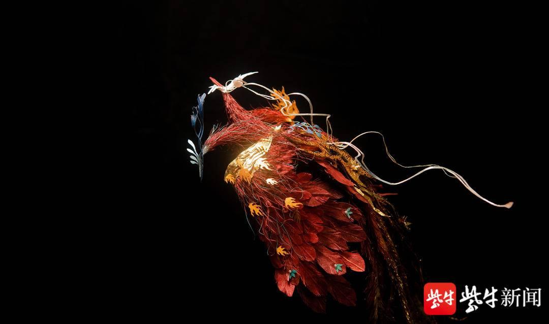 在冯则瑞的最新一件作品,他取名为青羽映璃,灵感来自于南京大报恩寺的琉璃宝塔,这件作品主要由宣纸制成,其中琉璃宝塔仅作为配角位于下方,作品主角则是一支青红色的神鸟,在宝塔上昂首展翅高飞,远远望去青色与红色相应呼应,十分惊艳。底下有网友评论道,“越来越复杂了,越来越难模仿了。”“太美了不敢相信这是用宣纸做的。”