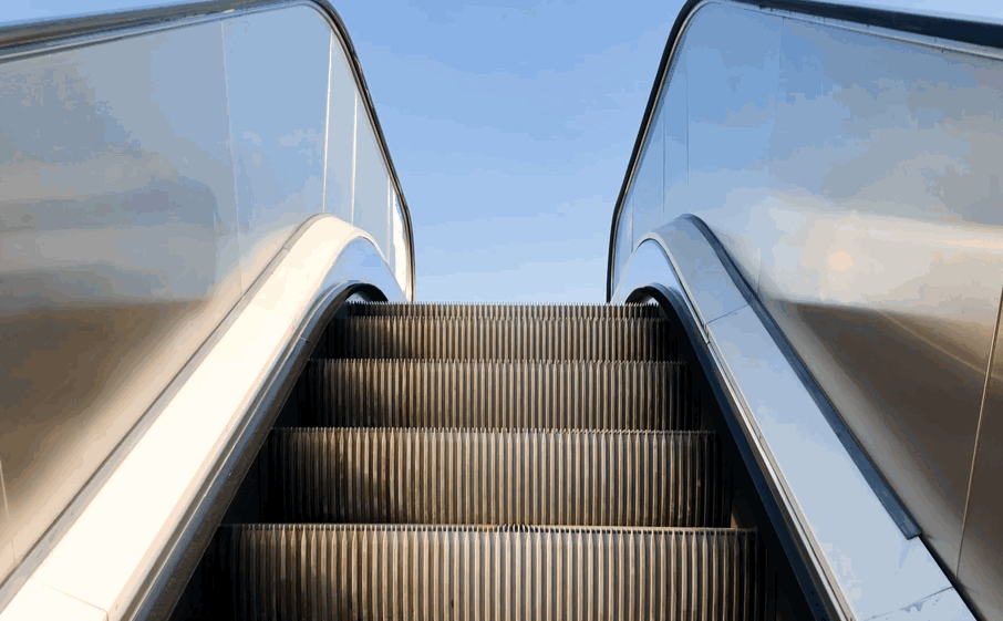 从滴水湖站1号口和2号口之间的下沉式广场的扶手梯上来,长长的电梯慢慢地上行,抬头向上看,在电梯最后一段没入地面的瞬间,你可以看见一片“蔚蓝”。
