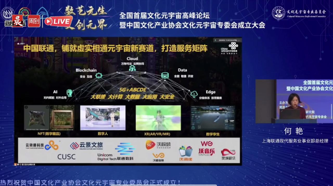 在近日的全国首届文化元宇宙高峰论坛期间,上海联通现代服务业事业部的总经理何艳在演讲中分享说,目前在数字藏品、数字人、XR以及数字孪生等元宇宙的重点技术方面,联通都设有专业研发团队,并有完整的解决方案。