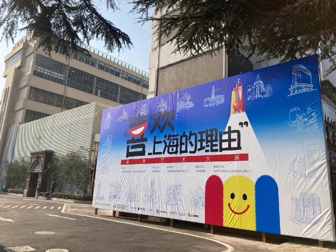 2022年元旦,延安西路高架下,由生产了多年马利颜料的厂房改建的马利美术馆内,上演了一场“喜欢上海的理由”上海漫画艺术大展。