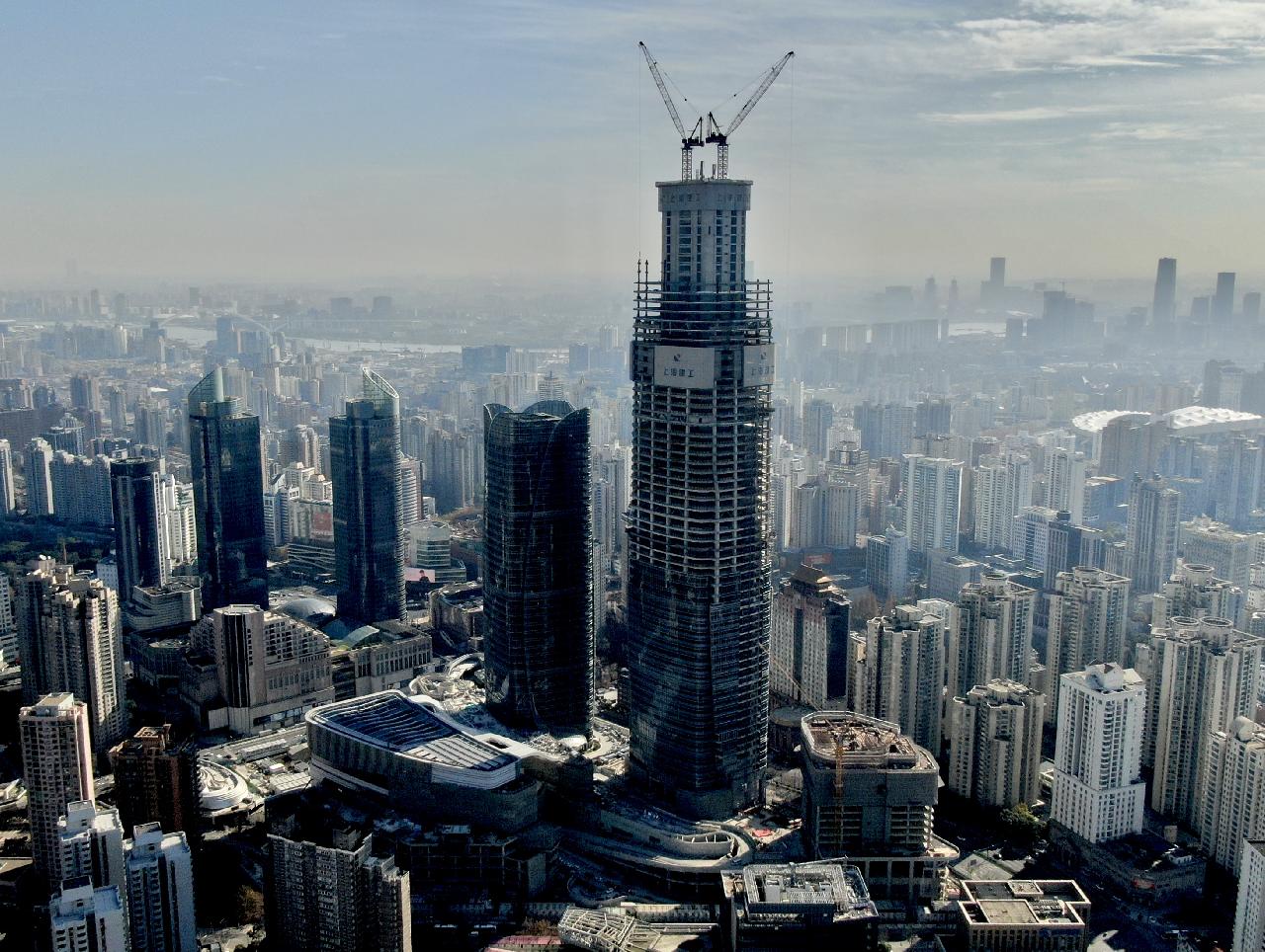 项目的总建筑面积约80万平方米,其中包括已落成的高220米的T1塔楼和建设中的高370米的T2塔楼2栋超高层办公楼,以及1座高层酒店、7层商业裙房和6层地下室。