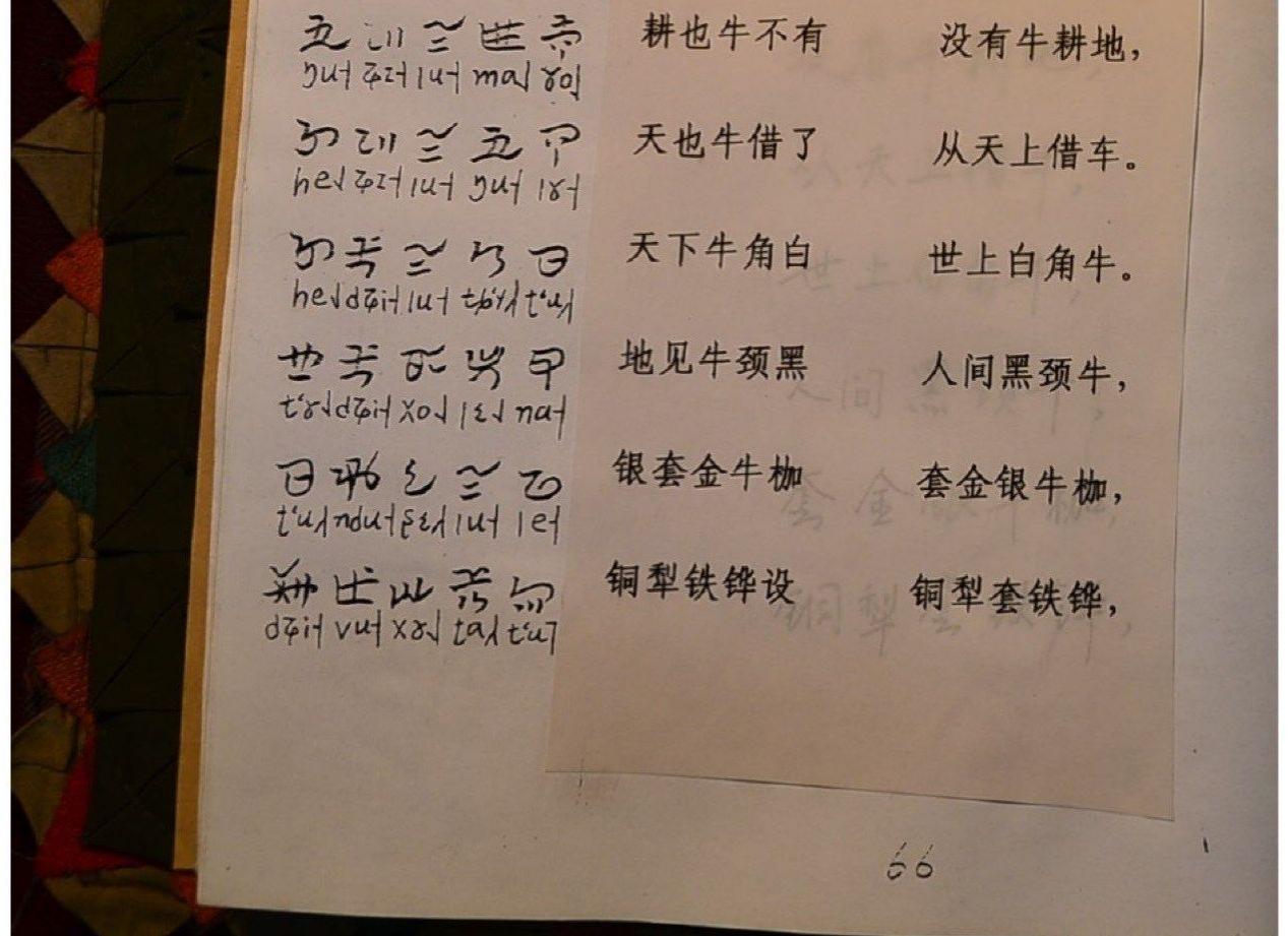 由于古彝文尚未取得预留的Unicode编码区段,数字化工程还处于起步阶段,所以在印刷出版时,需由一位彝文缮写员先将彝文字和国际编码抄写在书页的左侧,再将已输入电脑的汉文译文打印、剪切后粘贴在相应彝文字的右侧,形成目前常见的“四行体”彝汉文对译,过程相对繁琐。