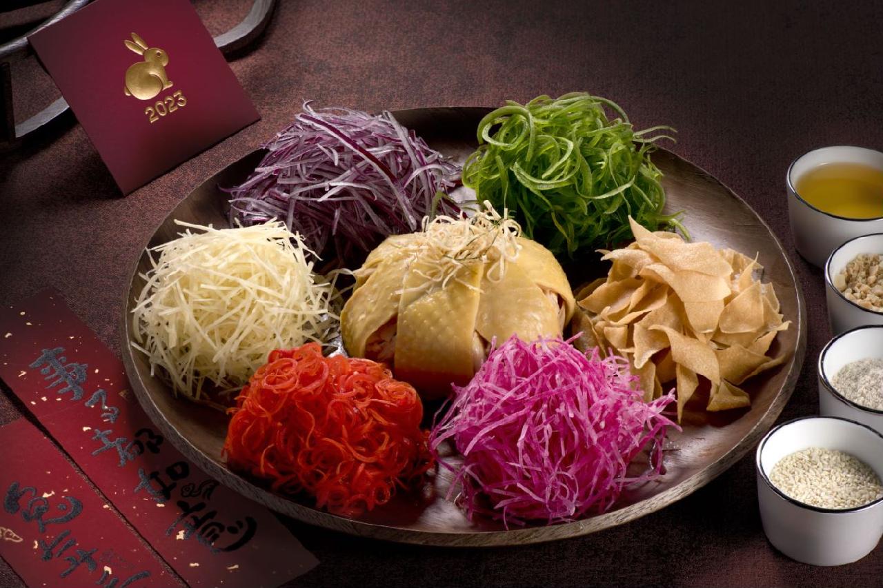 打开年味盛宴的菜单,满目的新年氛围贺词,从“风生水起·彩丰捞鸡”到“年年有余·自制年糕烧闽东大黄鱼”,或者是“六六大顺·泉水灼时蔬”,喜庆的年味跃然纸上,食材不仅有美食之城广东顺德的特色菜以整只清远鸡焗熟后切分并搭配色彩缤纷的各式小菜,现吃现拌,并以“捞”的动作,意味着收获一年的好运,最是应景;一条全鱼更是年夜饭上必不可少的菜肴,且融合了南方的手法与北方的食材,相辅相成祈愿来年好光景。