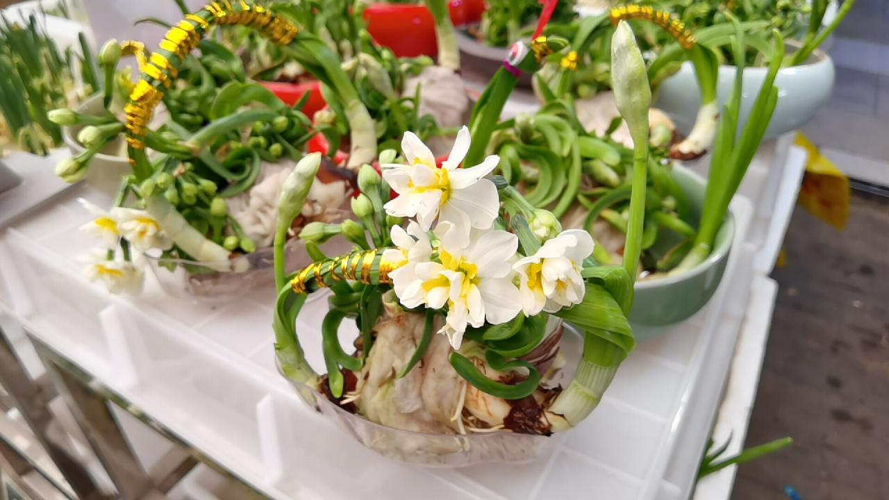 水仙花一直是年宵花里的重头戏,无论是买个土土的水仙花球回去雕出花苞,还是直接买盆已经雕好的水仙回去摆盆等花开,都是养水仙的常规方式。
