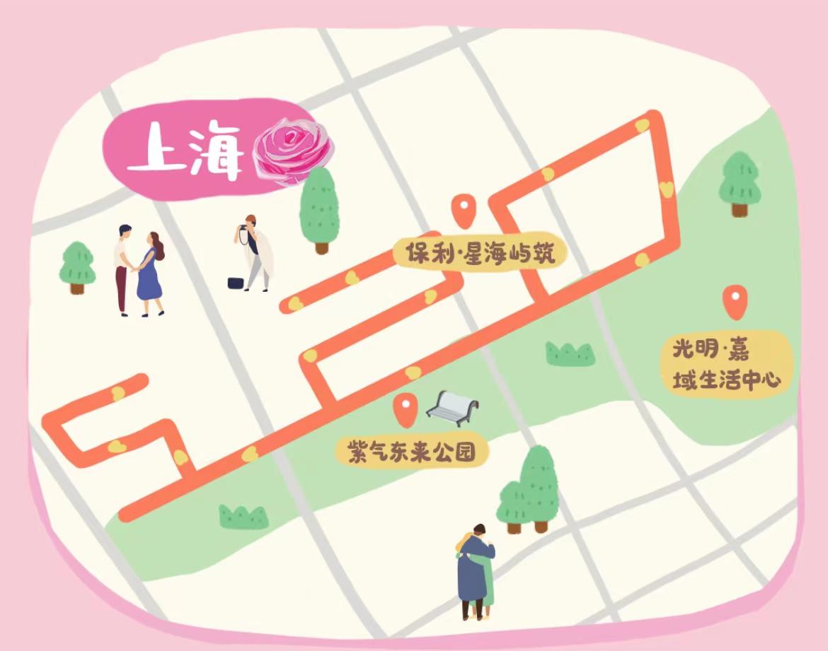 周到君在高德地图上体验了一把,打开app,搜索“表白路线”,就能找到距离自己最近的表白图形路线。比如周到君在威海路附近搜索的,显示结果出黄浦区的“520”步行路线,杨浦区、浦东新区、闵行区、长宁区等都有相应的“520”图形的表白路线。