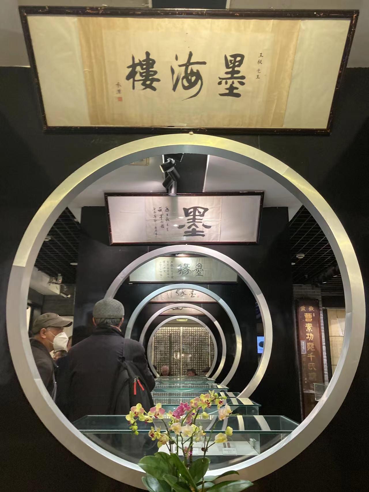 全场最大的彩墨,是当代徽墨雕模大师冯国权所制“西子湖图”银朱墨。用料近30斤,墨上刻绘了西湖名胜195处,令人叹为观止。